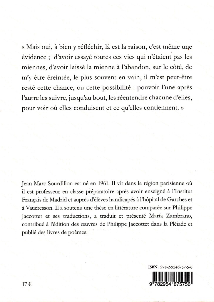 Les voix de Véronique est un livre pluriel, comme son titre le dit, complexe, comme l’est un tissage aux fils intriqués, un livre mystérieux et secret. Diverses figures sont à la source de ces voix. Il y a celle, Véronique, qui se cherche à travers d’autres vies, celui, Jean-Marc, qui les écrit et, de l’un à l’autre, plusieurs histoires, de femmes essentiellement mais pas tout à fait exclusivement. Véronique tente de les suivre, « l’une après l’autre (…) jusqu’au bout », de « les réentendre chacune d’elle, pour voir où elles conduisent et ce qu’elles contiennent » ; elle les a racontées, y compris à ceux qu’elles concernent ; à l’autre bout, Jean-Marc les « écoute » et les consigne. Mais ce faisant, l’une par la parole, l’autre dans l’écriture, tous les deux sont tendus vers une autre voix encore, tous les deux entendent une voix qui les appelle. Jean-Marc Sourdillon nous livre-t-il ici une représentation de l’inspiration ? Pas exactement, pas seulement. L’enjeu est plus grave, plus profond. C’est de vocation qu’il nous parle, de ce mouvement intérieur par lequel Véronique, Jean-Marc se sentent appelés, non pas par Dieu mais par l’amour, si on en croit une citation de C. Pozzi placée en épigraphe du dernier texte : « Je ne sais pas de qui je suis l’amour. »