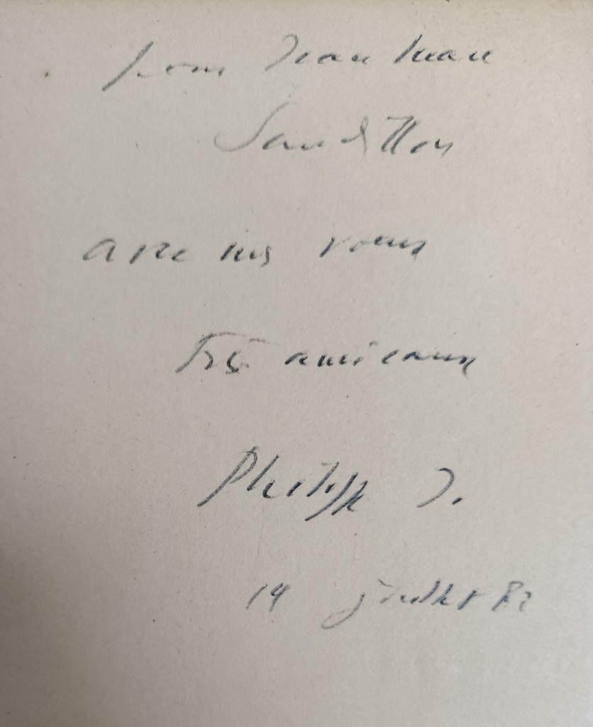 Eléments d’un songe est le premier livre de lui que Philippe Jaccottet m’a offert lorsque je suis allé les voir, Anne-Marie et lui, à Grignan, la première fois. J’avais 21 ans. Il a inscrit cette dédicace sur la page de garde.